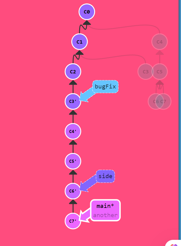 git rebase main bugFixgit rebase bugFix sidegit rebase side anothergit branch -f main c7'