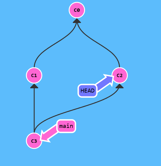 - 3-Way Merge(三方合并): 如果目标分支有了新的提交,Git 会创建一个新的合并提交,这个提交有两个父提交(一个是
